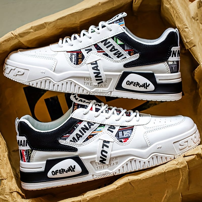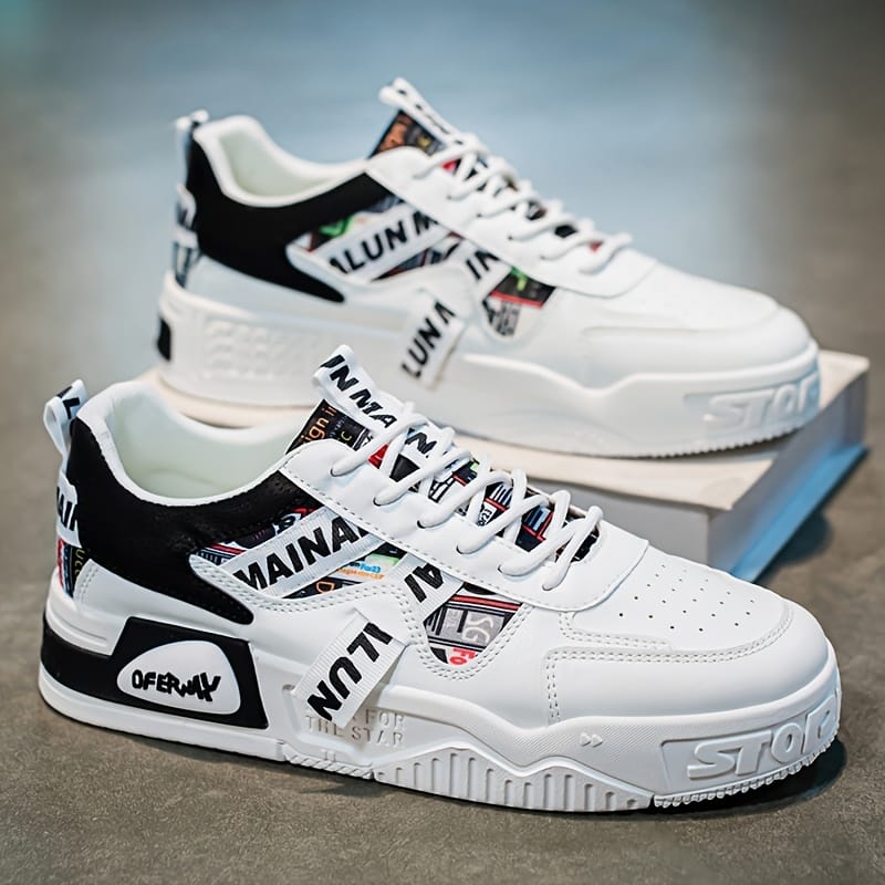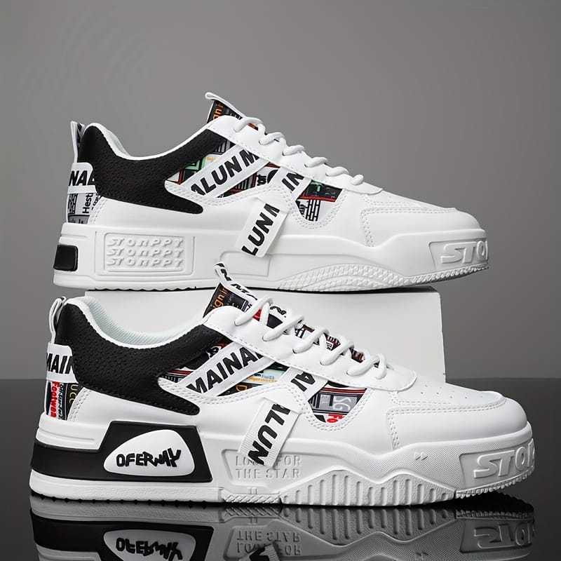 1 Pair MAINALUN Men’S Low-Top Casual Sneakers – Breathable, Lightweight, Comfortable, Versatile for Fitness, Sports, Travel, Work, and Holiday Gifts – White with Colorful Stripes and « LOVE » Design, Casual Footwear | Stylish Casual Shoes | Comfortable Footwear