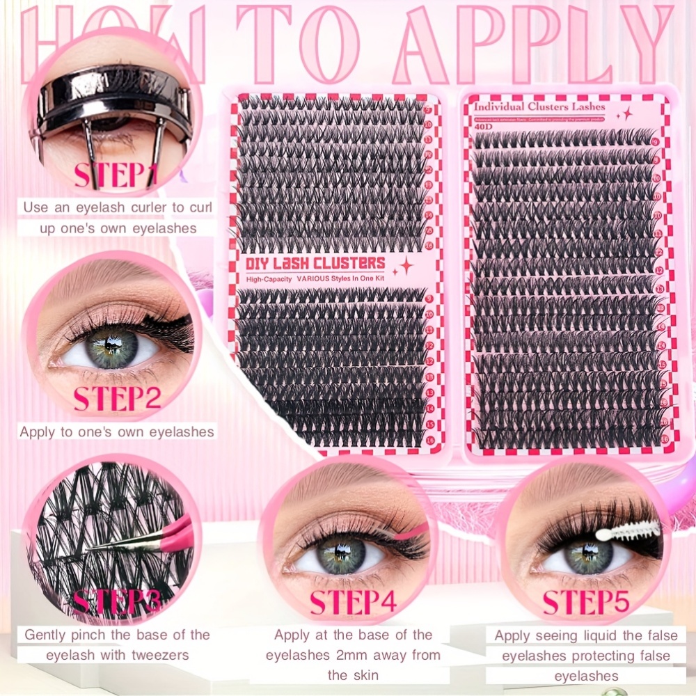 740/200pcs DIY Lash Clusters Eyelash Extension Kit, 2-in-1 Lash Bond, Tweezers, Glue Remover, Lash Brush, 30D+40D+50D 9-16mm Mix Lash Clusters for Beginner DIY At Home And Reusable for Daily Wear & Party & Halloween & Christmas
