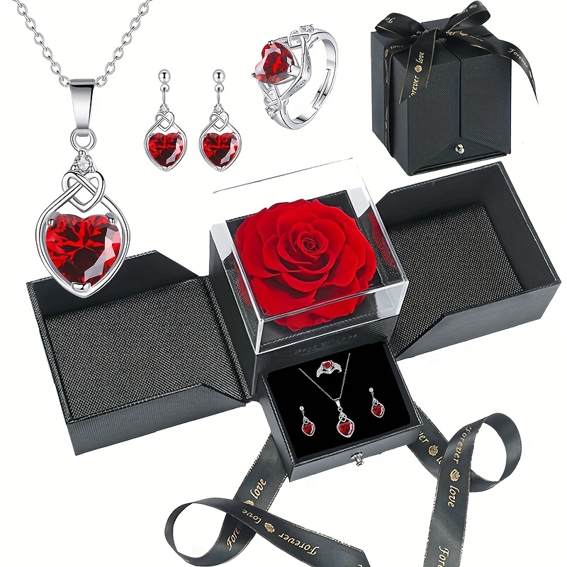 A Rose Gift Box with Heart-Shaped Earrings And a Necklace, Exquisite Jewelry for Your Lover, Mother, Best Friend, Partner, Wife, And Girlfriend. Perfect for Valentine’S Day, Thanksgiving, Christmas, Parties, Birthdays, And New Year Gifts.