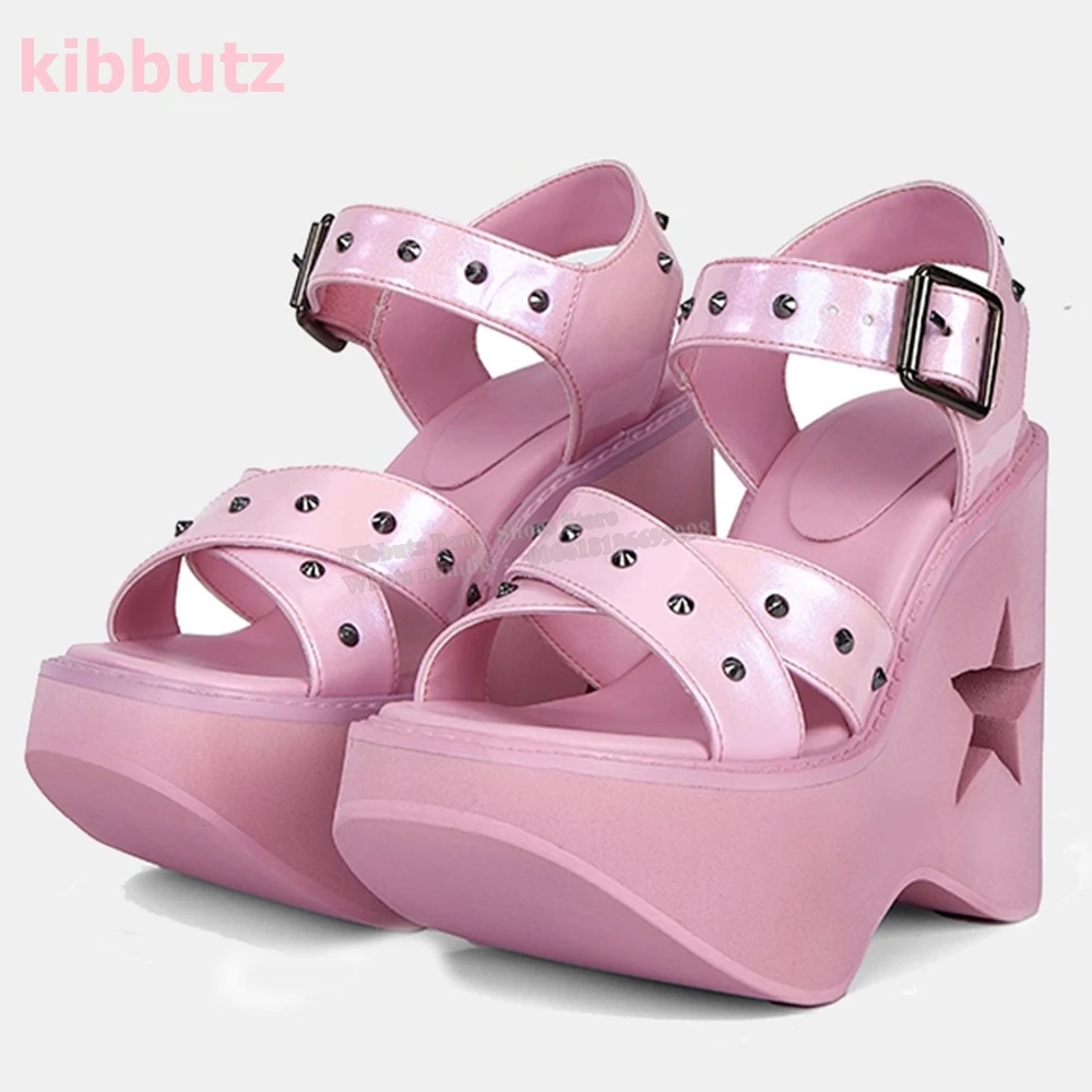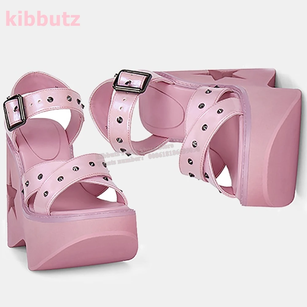 Dark Gothic Thick Bottom Sandals Rivet Open Toe Spicy Girl Star Rivets Heightening Hollow Muffin Roman Fashion Women Shoes New