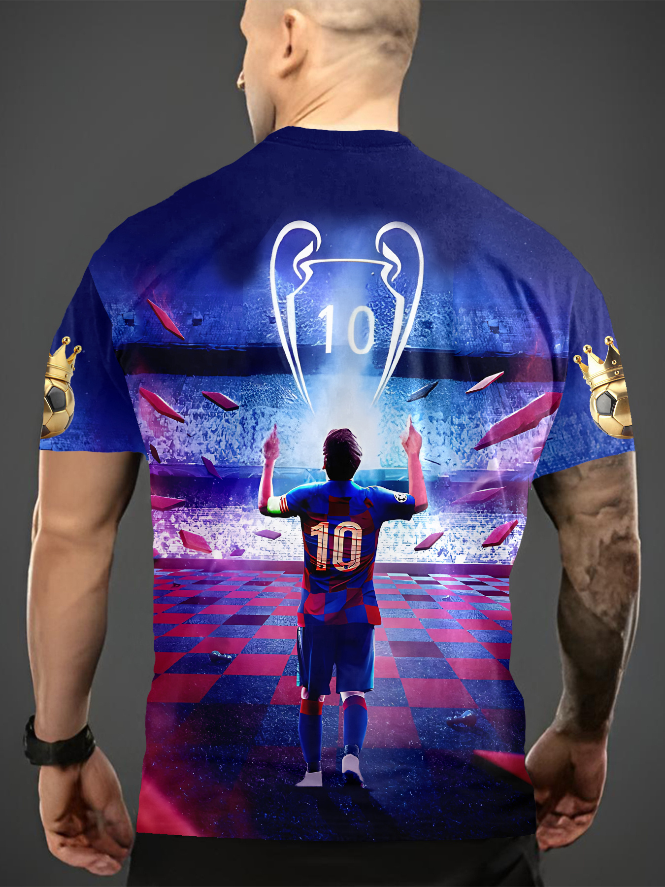 Men’S 3D Digital Print Soccer Jersey T-Shirt – Vibrant Blue & Red Checkered Design, Golden Trophy & « 25.4cm Graphic, Comfortable Round Neck Short Sleeve for Casual & Sporty Wear, Perfect Gift for Sports Fans, Soccer Shirts, Fan Merchandise, Durable Fabric