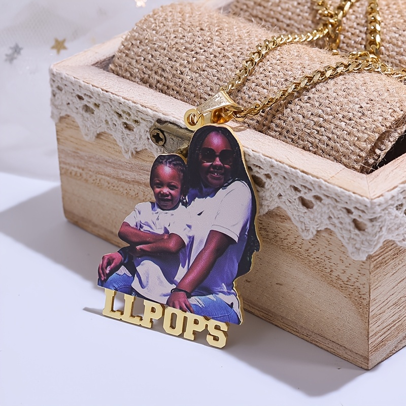 Personalized Golden Stainless Steel Photo Necklace with Custom Engraved Portrait, UV Color Printed Picture Pendant – Ideal for Daily Wear and Gift-Giving, Perfect Valentine’S Day Jewelry Gift for Her, Colorful, Character Portrait, Anniversary