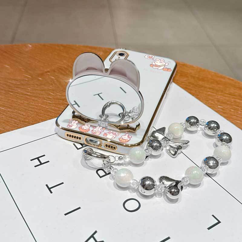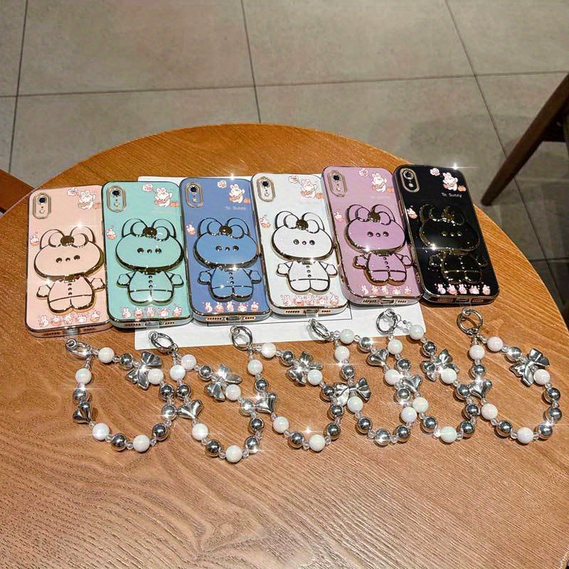 Phone Holder Case with a Pearl Strap from The XR Fashion Series, Designed for Iphone XR, Featuring a Stylish Plating Cover And a Cheerful Summer Orange Rabbit Design.