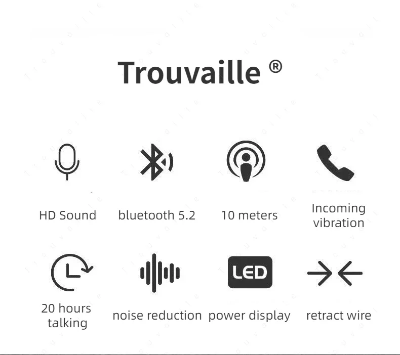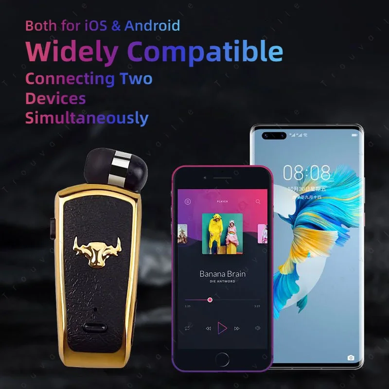 Trouvaille Wireless Headphones In Lotus Bluetooth Earphones Handsfree Headset Vibrate Earbuds With Retractable Wire Collar Clip